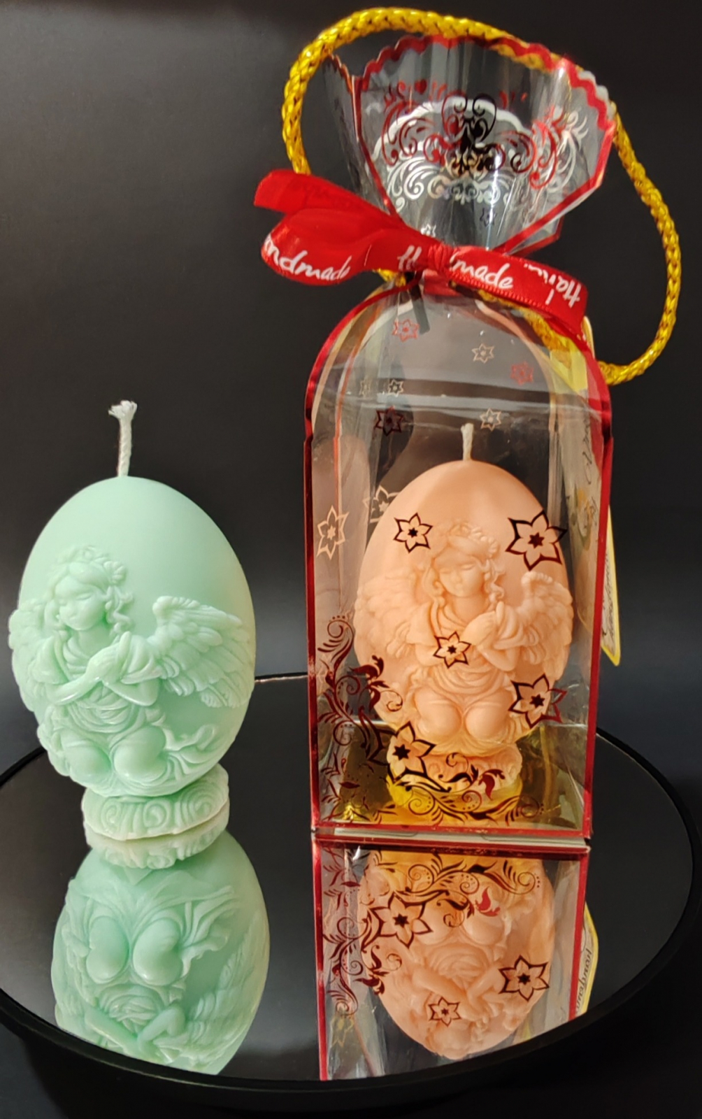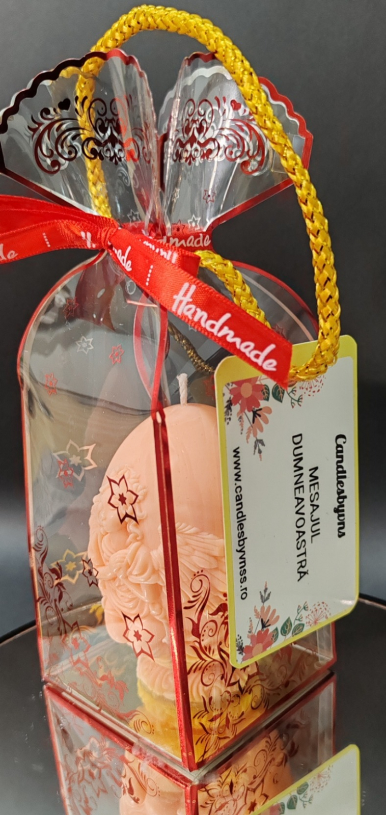 Lumanare decorativa cu inscriptie 3D inger. Diferite culori Roz, Vernil, Portocaliu, Albastru Deschis etc.